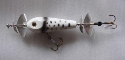 The Navigator is a smaller profile Top Water lure that comes equipped with two full rotating blades in the front and rear of the body. This lure will surely excite all types of big game fish.
